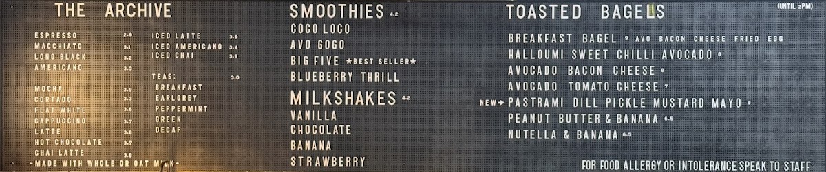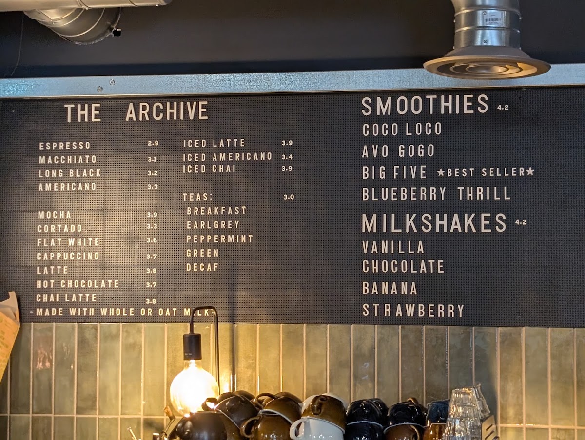The menu is structured to accommodate quick orders or casual dining, providing a selection of hot and cold drinks alongside light snacks and desserts.